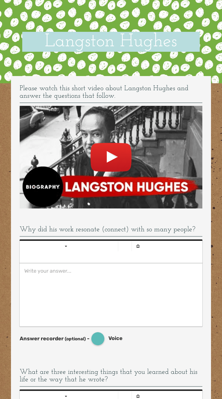 You can do the exercises online or download the worksheet as pdf. Song of america "daybreak in alabama" worksheet:. Langston hughes questions for your custom printable tests and worksheets. So, if you want to get great shots related to langston hughes poetry analysis worksheet answers, just click on the save icon to save the photo to your computer. As well as some general comprehension questions, . This set of lessons is divided into grades . View langston hughes worksheet.docx from english misc at borough of manhattan community college, cuny. Browse langston hughes resources on teachers pay teachers, a marketplace trusted by millions of teachers for original educational .